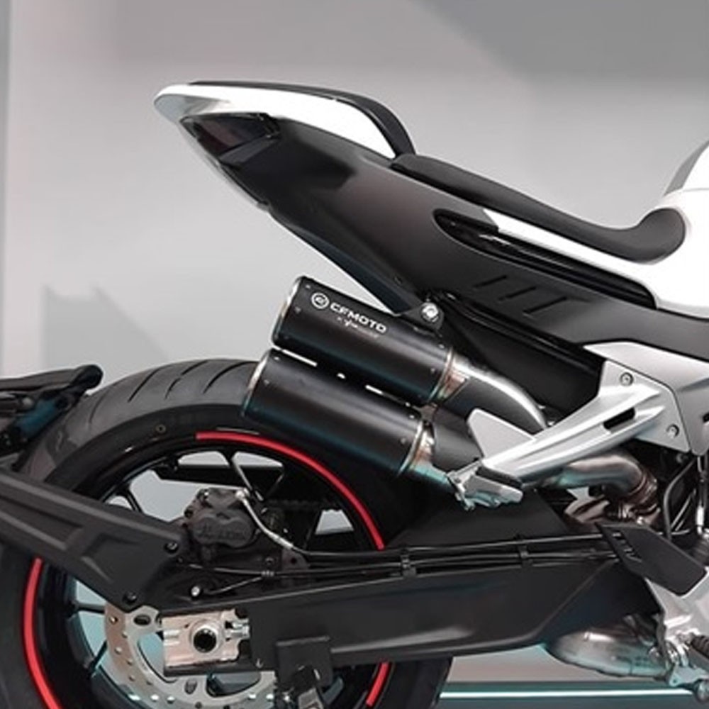 Le silencieux double sorties pour CFMOTO 800NK apporte un look ultra sportif et agressif avec sa double sortie. Il améliore la sonorité et renforce le caractère de votre moto.