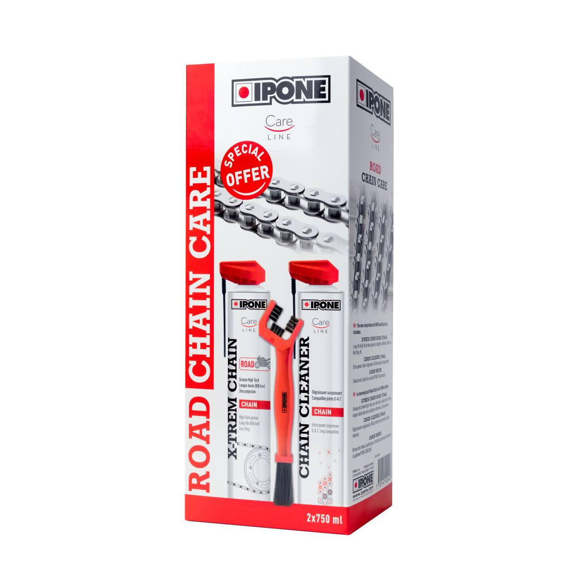 Prends soin de ta transmission avec le kit entretien chaîne IPONE ROAD 750ml, parfaitement adapté aux motos CF MOTO. Idéal pour un usage route, ce pack te permet de nettoyer, lubrifier et protéger ta chaîne pour garder des performances au top et prolonger sa durée de vie. Un indispensable pour rouler propre, fluide et sans prise de tête.