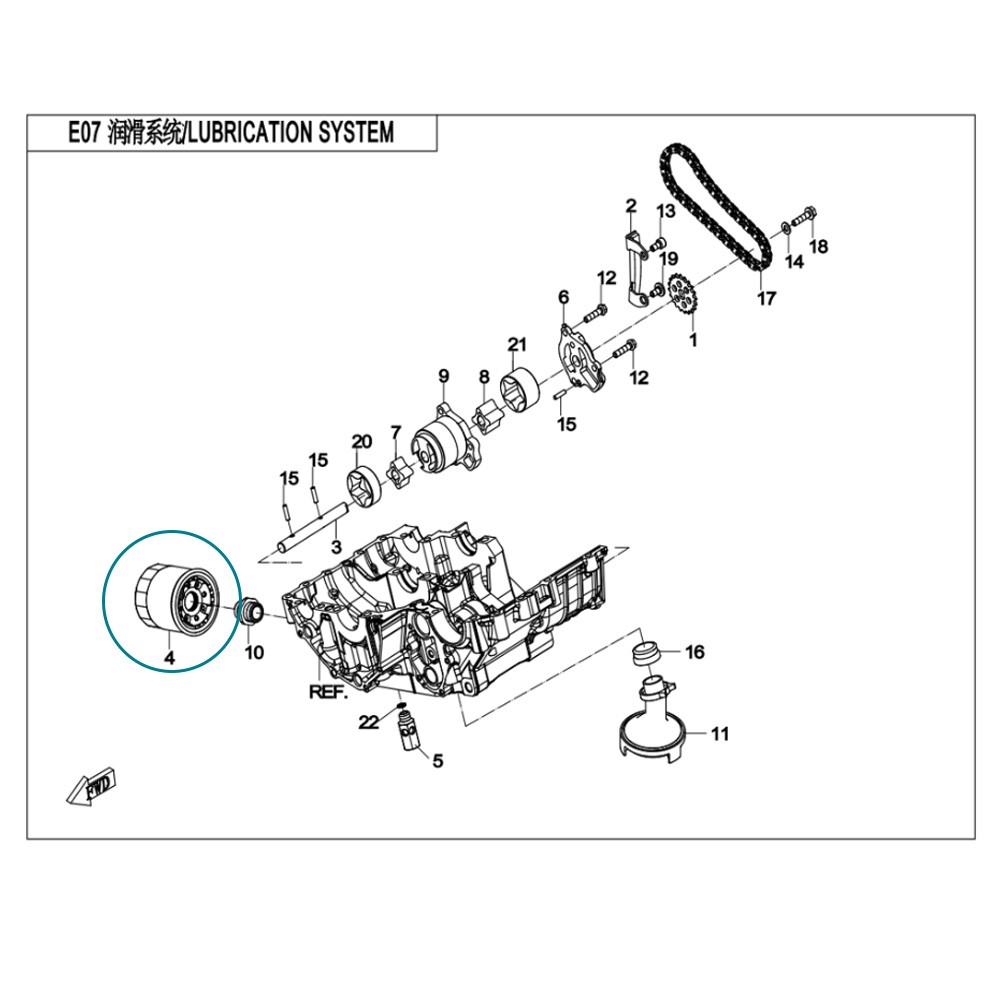 Il s’intègre parfaitement au système de lubrification de la moto et constitue une pièce indispensable pour un entretien fiable et régulier de votre CFMOTO 450MT.