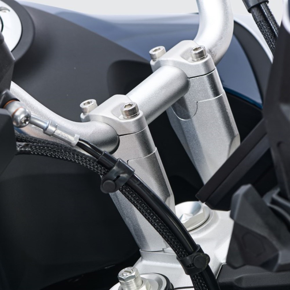 La rehausse de guidon +20 mm CFMOTO 800MT est conçue pour améliorer l’ergonomie et le confort de conduite, aussi bien sur route qu’en off-road.