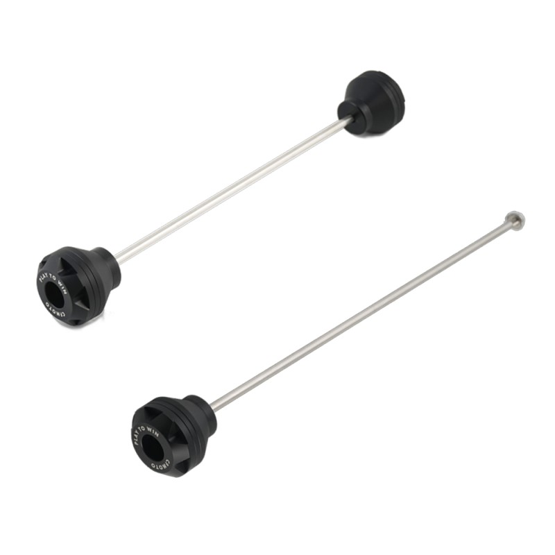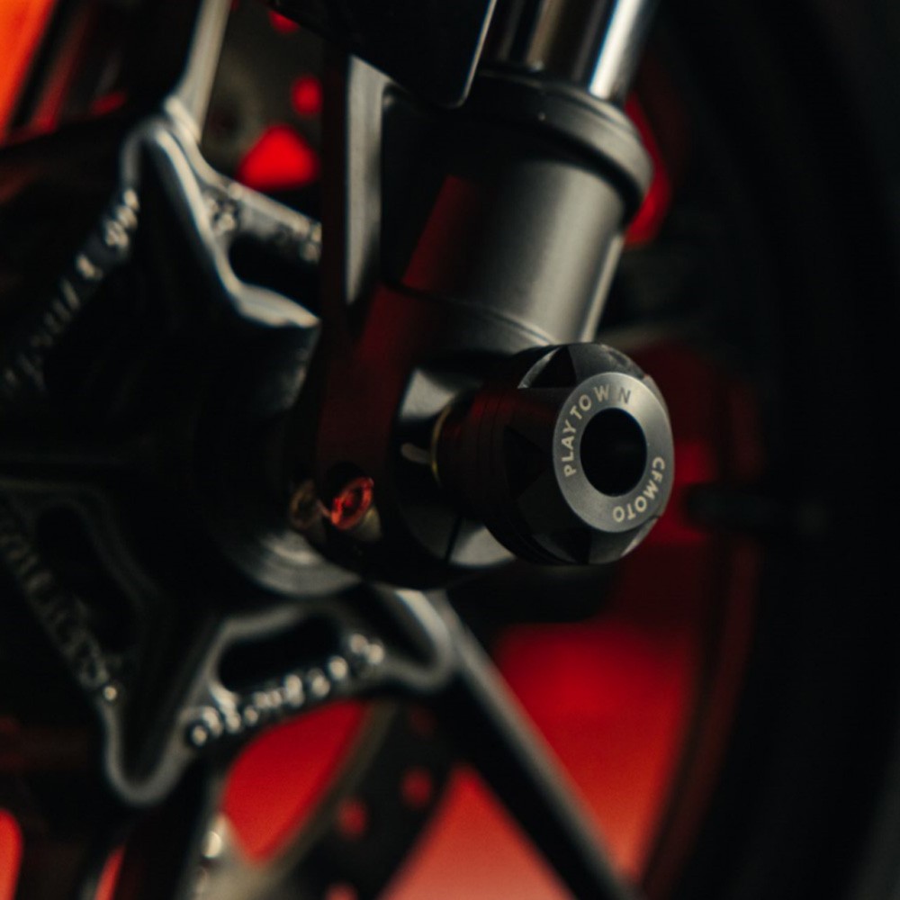 Le kit tampons de protection avant et arrière pour CFMOTO 450SR et 450NK offre une protection complète des axes de roue et des éléments sensibles en cas de chute. Il sécurise à la fois la fourche, l’axe avant, le bras oscillant et le pignon arrière.