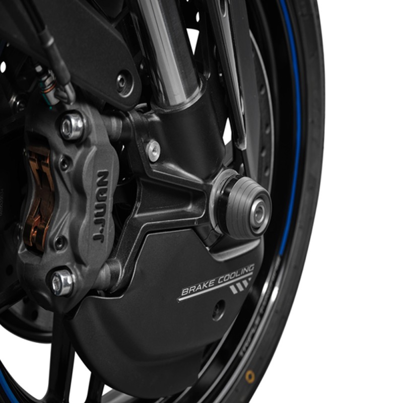 Les tampons de protection de roue avant CFMOTO 675 SR / 675 NK sont conçus pour sécuriser les éléments situés autour de l’axe avant, notamment la fourche, en cas de chute ou de glissade.